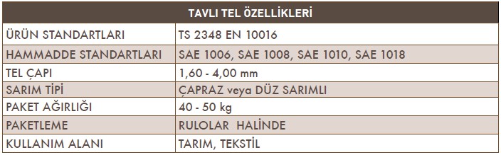ve siyah tavlı tel olmak üzere 2 farklı çeşit üretimi gerçekleştirilmektedir.